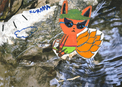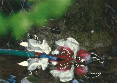 Coordonné par la cellule Chimay Philippeville de l’asbl Article 27 à la demande de la ville de Philipeville et dans le prolongement de la quinzaine wallone de l’eau, ce projet s’est décliné sous de nombreuses formes avec la complicités des divers partenaires associatifs de l’Entité ( Maison de la Laïcité, Maison des Jeunes, Centre Culturel, balad’Ânes…); dans le but d’agir de façon concrète pour l’environnement, tout en favorisant la participation sociale et artistique. Lors de balades organisées pour nettoyer les rivières de l’Entité, des déchets ont été ramassés et pris en photo. A partir de ceux-ci et avec l’aide de nos animatrices Sophie et Emilie, des sculptures « monstrueuses » ont été construites et leurs photos ont été retouchées à l’aide de dessins pour faire apparaître les figures monstrueuses cachées dans ces amats de détritus polluant les berges.